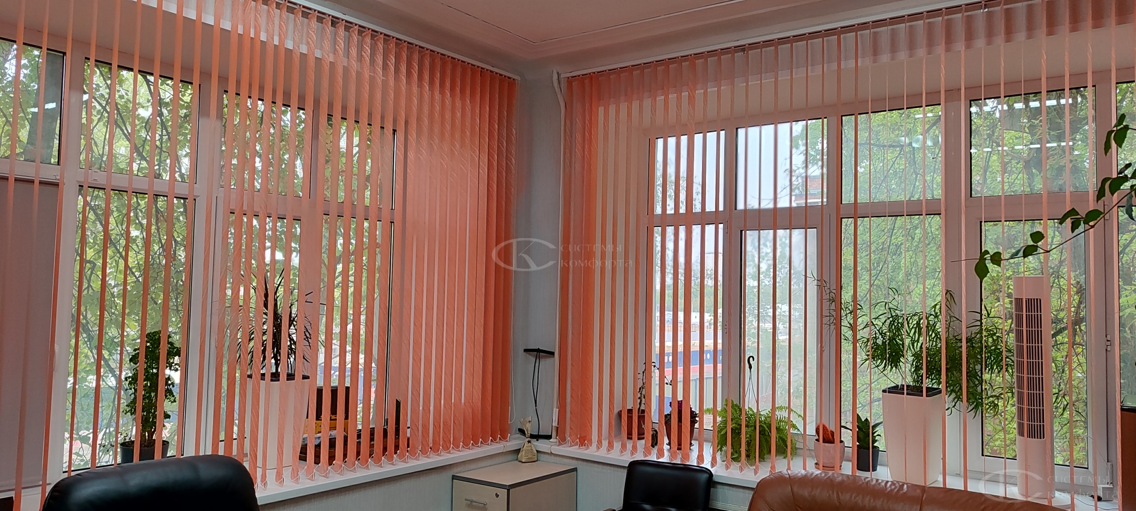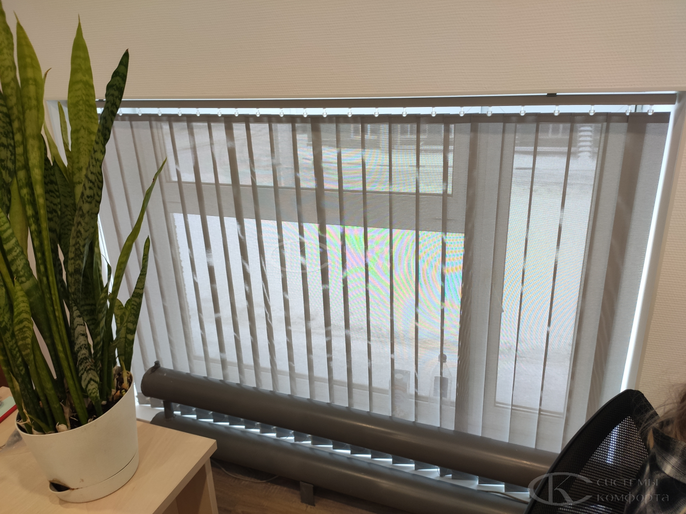 Вертикальные тканевые жалюзи — недорогой вариант солнцезащитной системы для дома или офиса. Они хорошо защищают помещение от солнца. Недостатком такой системы считаются быстрая поломка при неаккуратном обращении и загрязнение ткани при проветривании помещения. Но если очистить от грязи и пыли их не получается, то задача решается путем недорогой замены ламелей. Из преимуществ можно отметить огромный выбор цветов и фактуры, а также возможность нанесения фотопечати: картинки или логотипа. Бесплатный замерщик поможет выбрать модель и определиться с решением. Персональный менеджер поможет сделать предварительный расчет.
